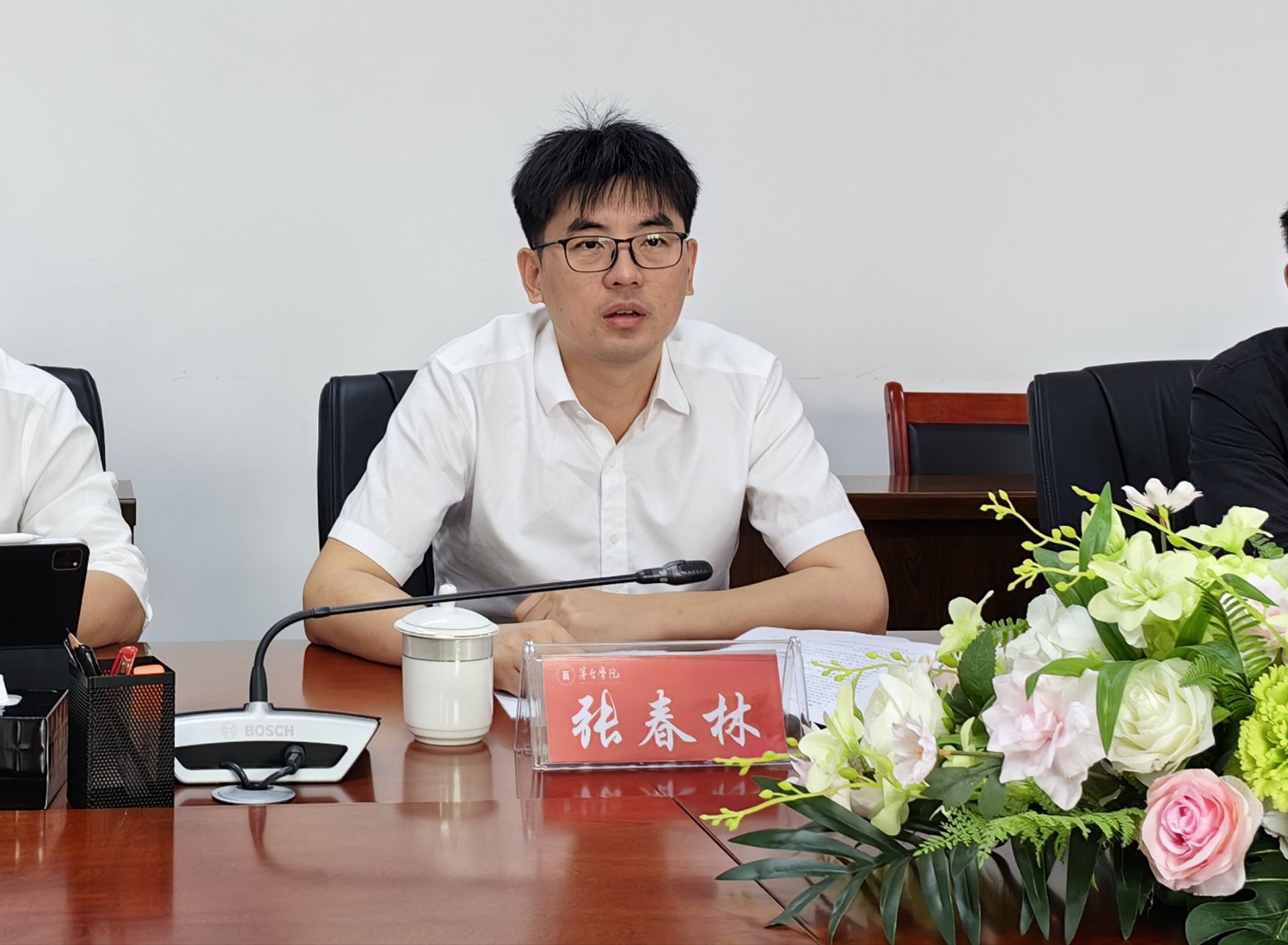 2024年6月5日,教务处在行政楼二楼会议室组织召开2024年金工实习推进会,党委委员、副校长张春林出席并讲话,教务处处长张丰主持会议。