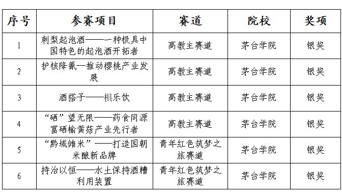 经过激烈角逐,资源环境系周贵林同学主持、夏伟老师指导的项目《藻能计划——酿酒废水资源化利用新方案》获得省赛高教主赛道金奖并获得国赛入场券资格,《刺梨起泡酒——一种极具中国特色的起泡酒开拓者》等共6个项目获得省赛银奖,《钟音绕梁——智能交互式酒类包装设计引领者》等共8个项目获得省赛铜奖。