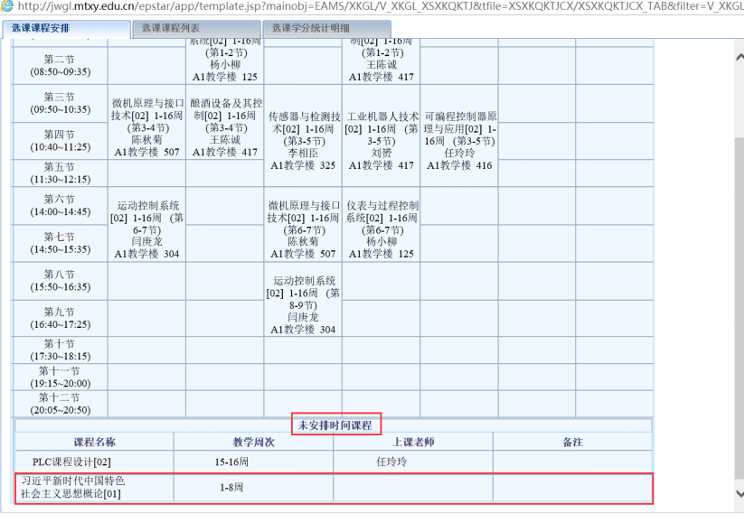 1  网络通识选修课程在课表中显示示意图