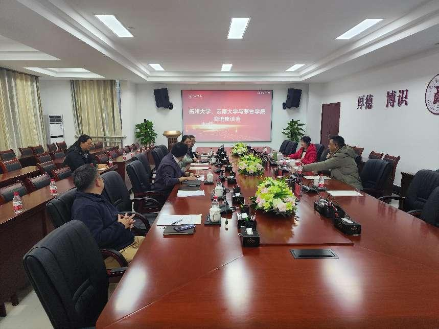 12月28日,贵州大学图书馆副馆长肖毅、云南大学国家知识产权信息服务中心主任张禹等一行到beat365正版唯一官网必一开始知识产权调研交流。座谈会在行政科二楼会议室召开,科研处副处长袁德志、图书信息中心主任李萍、国际合作与对外交流处副处长彭涛出席会议。