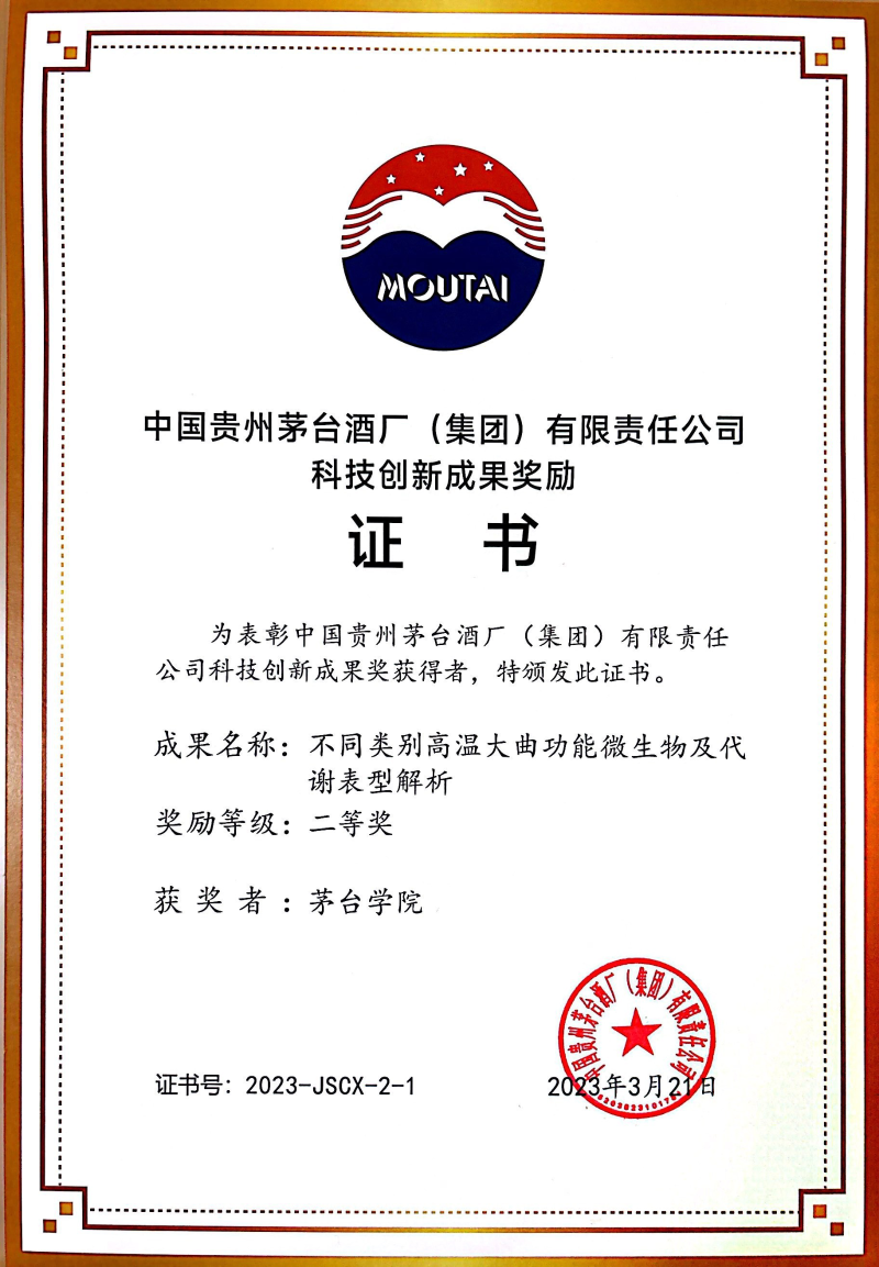 二、茅台集团科技创新成果奖二等奖